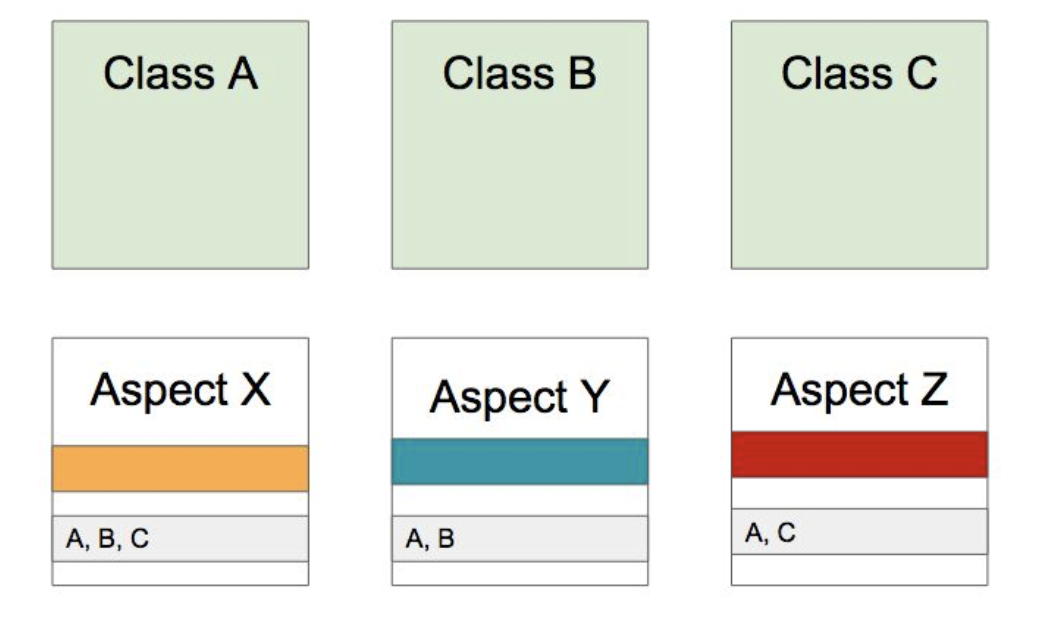 위와 같이 해야 할 일 들을 Aspect로 모듈화 한 것이다. -> Concern 들의 모듈화