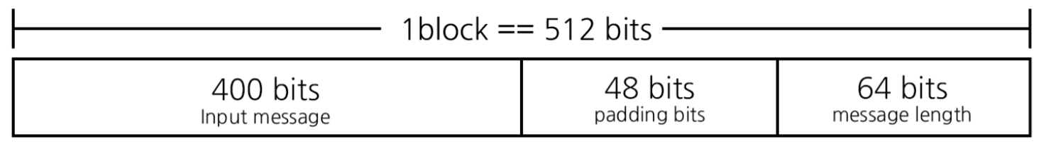 - 패딩 이전 본래 메시지의 길이를 64비트 남겨둔 곳에 저장 해준다.